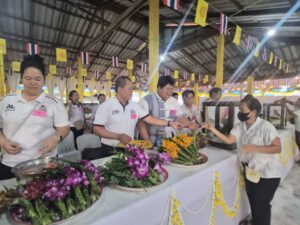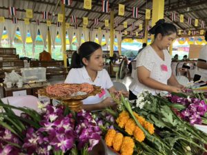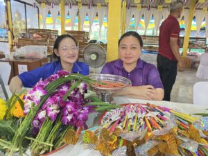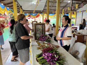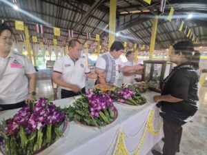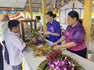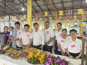 ร่วมจำหน่ายดอกไม้ ธูปเทียน เพื่อส่งเสริมและสืบสานวัฒนธรรมประเพณีไทย และกิจกรรมสัมพันธ์ชุมชน