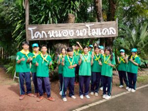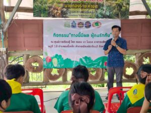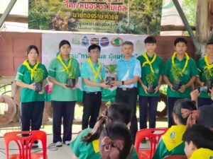พร้อมด้วยนายอภิชาติ นรสิงห์ และนายประดิษฐ นุตศิริ นำนักเรียนสภานักเรียนเข้าร่วมกิจกรรม “ทางนี้มีผล ผู้คนรักกัน” เพื่อส่งเสริมความรัก