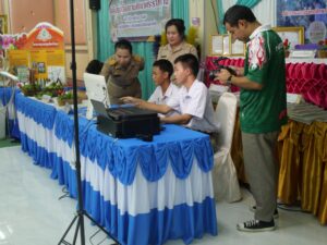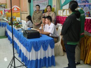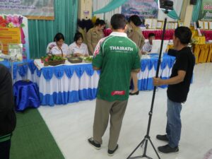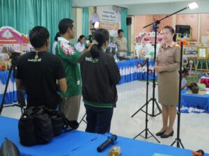 คุณกนกรัตน์ โกวิชัย ผู้สื่อข่าวเศรษฐกิจอาวุโสไทยรัฐทีวี และคณะ ในการถ่ายทำ สกู๊ปข่าวที่โรงเรียนไทยรัฐวิทยา 7 โดยมีหัวข้อข่าว