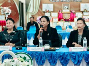 และนางณัฐพร แสงศศิธร ผู้อำนวยการโรงเรียนเขาเพิ่มนารีผลวิทยา ผู้อำนวยการกลุ่มนิเทศ ในการใช้ห้องประชุมสำหรับการพัฒนาข้าราชการครู และบุคลากรทางการศึกษา ก่อนแต่งตั้งให้ดำรงตำแหน่งศึกษานิเทศก์ ณ ห้องประชุมลีลาวดี โรงเรียนไทยรัฐวิทยา ๗