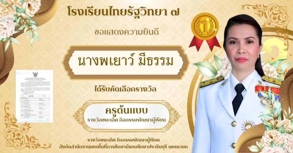ข่าวประชาสัมพันธ์ จดหมายข่าวประชาสัมพันธ์นางพเยาว์ มีธรรม ได้ีับคัดเลือกครูต้นแบบ รางวัลชนะเลิศ กิจกรรมพัฒนาผู้เรียน admin / 15 ธันวาคม 2025 นางพเยาว์ มีธรรม ได้ีับคัดเลือกครูต้นแบบ รางวัลชนะเลิศ กิจกรรมพัฒนาผู้เรียน Read Post »