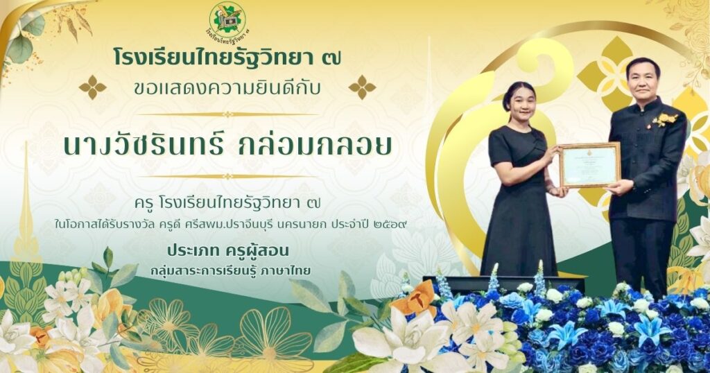 ข่าวประชาสัมพันธ์ จดหมายข่าวประชาสัมพันธ์แสดงความยินดีคณะครูในโอกาสได้รับรางวัล ครูดี ศรีสพม.ปราจีนบุรี นครนายก ประจำปี ๒๕๖๙ admin / 17 มกราคม 2026 แสดงความยินดีคณะครูในโอกาสได้รับรางวัล ครูดี ศรีสพม.ปราจีนบุรี นครนายก ประจำปี ๒๕๖๙ Read Post »