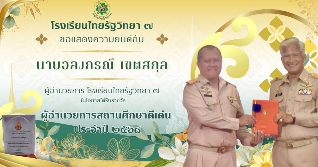 ข่าวประชาสัมพันธ์ จดหมายข่าวประชาสัมพันธ์แสดงความยินดีนายอลงกรณ์ เขตสกุล ผู้อำนวยการโรงเรียนไทยรัฐ ๗ ได้รับรางวัล ผู้อำนวยการศึกษาดีเด่น ประจำปี ๒๕๖๘ admin / 20 มกราคม 2026 แสดงความยินดีนายอลงกรณ์ เขตสกุล ผู้อำนวยการโรงเรียนไทยรัฐ ๗ ได้รับรางวัล ผู้อำนวยการศึกษาดีเด่น ประจำปี ๒๕๖๘ Read Post »
